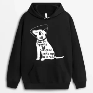 It’s All Fun Games ’til Someone Ends Up In A Cone Dog Hoodie – Black