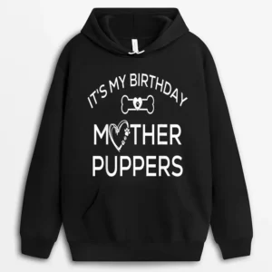 It’s My Birthday Mother PuppersLets Pawty Dog Mom Hoodie – Black