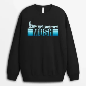 Mush Dog Sleigh With Sled Dogs Mushing Retro For Musher Jersey – Black