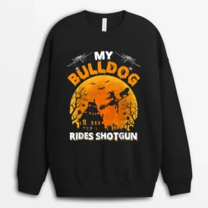 My Bulldog Ride Shotgun Funny Bulldog Halloween Jersey – Black