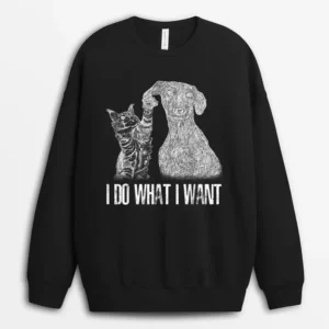 I-Do-What I-Want Cat With-Dog Hand Drawn-Portrait Jersey – Black