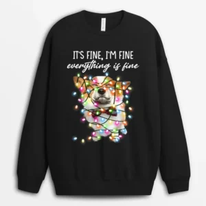 I’m Fine Everything Is Fine Corgi Dog Christmas Lights Xmas Jersey – Black